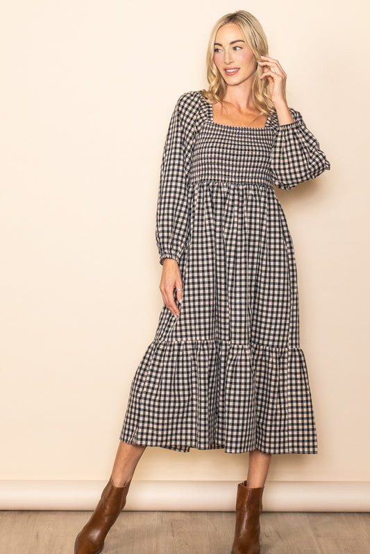 Gingham Smocked Midi Dress